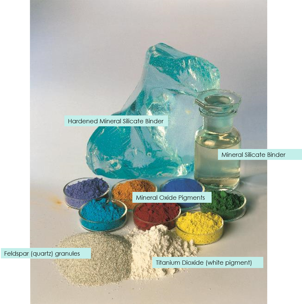 Keim mineral paints not only form a surface layer but also penetrate and chemically fuse to form a permanent bond within masonry, combined with a crystalline matrix and lightfast pigment at the surface. These covalent bonds are among the strongest in nature and are the same bonds that form limestone in the earth’s crust.